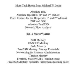 So I’m reverting to the previous design for OpenBSD Mastery: Filesystems. It might result in a price increase. Maybe not, because it’s a little shorter than the SNMP book. But the result will be a nicer physical artifact that provides a better reading experience.