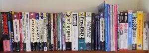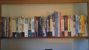 I took the photo to make the shelf look full, but note that there’s space at the far left end, next to the Japanese translation of Absolute FreeBSD.