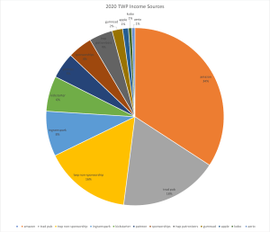 Sponsorship income is down, but I only had one book on sponsorship in 2020. If I want more sponsors, I must write more. That’s a goal for 2022. I’ll be using pre-scheduled Internet blocking software to reduce distraction.