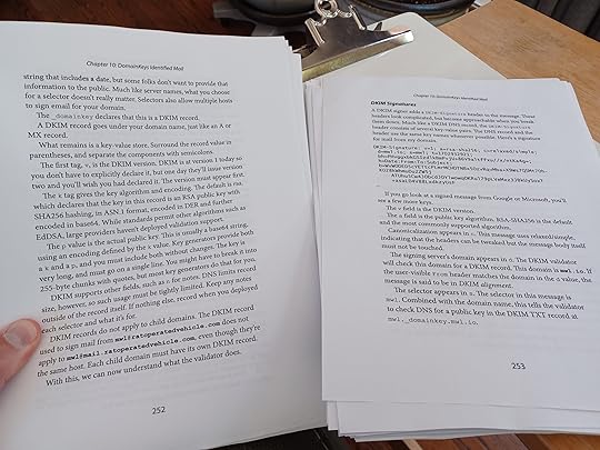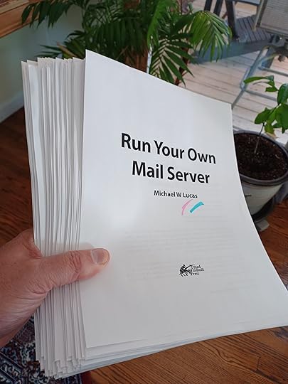For the next couple of days I’m reviewing the paperback print proof of Run Your Own Mail Server. I received the proofs just before I flew to Vegas, and while I glanced through the book in between my meetings, I spent most of my energy selling work and learning new ways to insinuate myself into the publishing ecosystem. I must dedicate time to examining each page, even though looking at the text triggers mental torment.