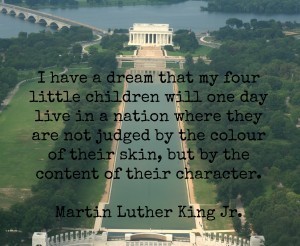 Last week I attended Miss 12′s class production. The class had been studying ‘Courageous People’ and each little group of students chose a person and came up with a skit or Power-point slides to show the parents what they’d learned. Miss 12 did an excellent job as the narrator of Abraham Lincoln’s story, but it was a small group of children who acted out Martin Luther King Jr’s story that had me in tears.