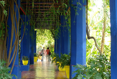 While we’re speaking of French gardens, I should mention the exotic Jardin Majorelle in Marrakech. It is a haven of tranquility in a city that fairly writhes with frenetic activity. Built in the 1920’s by French artist Jacques Majorelle, the garden’s spareness and simplicity is punctuated with a special shade of bold cobalt blue. Designer Yves Saint-Laurent co-owned the property with Pierre Bergé until Laurent’s death in 2008. We loved the little café surrounded by walls draped with lush vines and savored a few hours of quiet in that raucous, fascinating city.