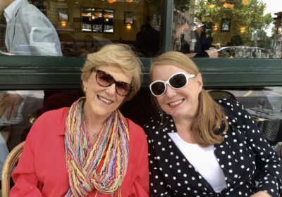 Lynne and Deborah hard at work doing research in a Paris Bistro.