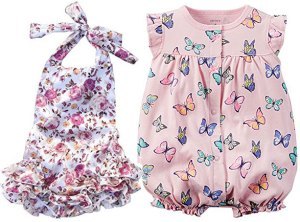 The grandchild Dr. K and I are expecting is a girl. In the last hour and a half since I found out, I’ve already gone shopping, or should I say buying these two adorable rompers.