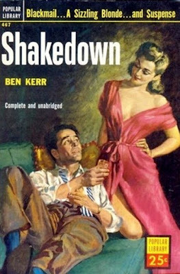 SHAKEDOWN was published originally in hardcover by Henry Holt in 1952 and reprinted in paperback by Popular Library in 1954. The by-line on the book is Ben Kerr, but the actual author was William Ard, the popular Fifties writer who passed away in 1960 at the much too young age of 37. In addition to the stand-alone mystery and suspense novels and a two-book series featuring PI Barney Glines that he authored as Ben Kerr, he wrote a well-regarded series under his own name featuring PI Timothy Dane and a couple of books starring ex-con Danny Fontaine. He started a series starring private eye Lou Largo but wrote only part of the first book before dying. Lawrence Block completed that book, and John Jakes wrote several more under Ard’s name featuring Lou Largo. Ard’s most successful work during his lifetime may well have been the Western series he wrote in the late Fifties starring adventurer Tom Buchanan, published under the pseudonym Jonas Ward. Ard wrote five of those and started the sixth one, which was completed by Robert Silverberg. Used copies of the Buchanan novels were easily found in used bookstores when I was a kid, and I eagerly bought and read all of them, without having any idea who actually wrote them, of course. Nor did I care, at that point.