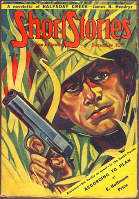 This issue of SHORT STORIES is a bit of an oddity in that the cover by A.R. Tilburne doesn't feature a red sun, although there is a blob of red just above the muzzle of that nice-looking 1911. I like the cover quite a bit, even without a red sun. The line-up of authors inside this issue is really strong: H. Bedford-Jones, E. Hoffmann Price, Frank Richardson Pierce, James B. Hendryx, H.S.M. Kemp, and lesser-known Berton F. Cook and Harry Bridge. Hard to go wrong with any issue that includes HB-J, Price, Pierce, and Hendryx.