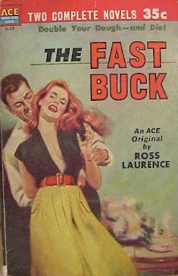 Don’t mistake this for some sort of lost classic, though. It’s not. The writing, for the most part, is too unpolished and awkward for that. As far as I’ve been able to determine, Ross Laurence wrote only this one book. I wondered at first if the name was a pseudonym for an author better known under some other byline, but I don’t think so. THE FAST BUCK really reads like a first novel, with flashes of real talent struggling to get out through the amateurish writing. If anyone knows more about the author, I’d be really interested to hear it. I wouldn’t rush out to find a copy of this book, but if you run across it, it’s worth reading for the unrealized potential you can see in the author, if for no other reason.