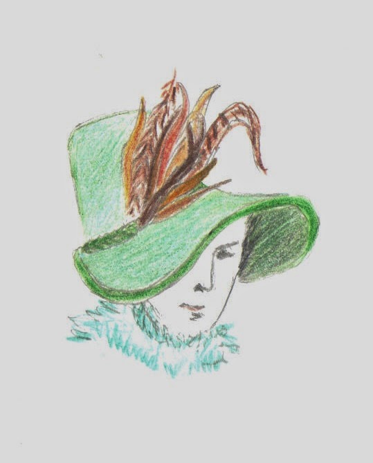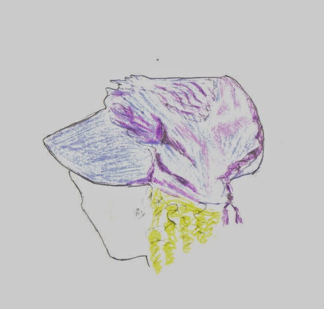 ShakoFurther military-style headgear was much in vogue following the Battle of Waterloo. Masculine apparel had already been adopted into lady's fashion in the form of the Spencer and the severely cut riding habit. Soon this latter item in particular was crowned with a hat similar to the Shako, a peaked cap 'shaped like a truncated cone', adorned with a plume, a ball or even a pompom. They were also trimmed with braid to match frogging on the bodice of a riding habit. The word 'shako' comes from a Magyar word meaning short. The Egyptian influence had already been seen in the early years of the nineteenth century, following the craze for the Oriental. This was, in its turn, superseded by Spanish styles as a result of interest in the Peninsula War, Spanish decoration being added to the gown still considered of classical design. Meanwhile, another eastern influence in hats came in the shape of the turban, particularly popular in Georgette Heyer's novels as the evening headwear of dowagers and matrons. Silk or satin were the fabrics of choice, a portrait from the late 1780s by A.W. Devis, picturing an elegant confection of blue satin picked out in silver, edged with gold and white striped gauze and topped with white ostrich plumes.