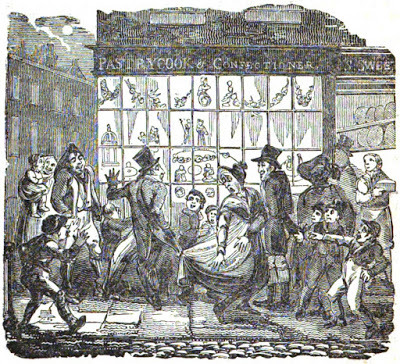 On Twelfth-Day, the confectioners pulled out all the stops to create fabulous displays in their shop windows, of a wide range of cakes and delicacies to suit all purses. These ranged from the most exotically decorated and iced confections – the largest on an enormous salver – to simple buns.