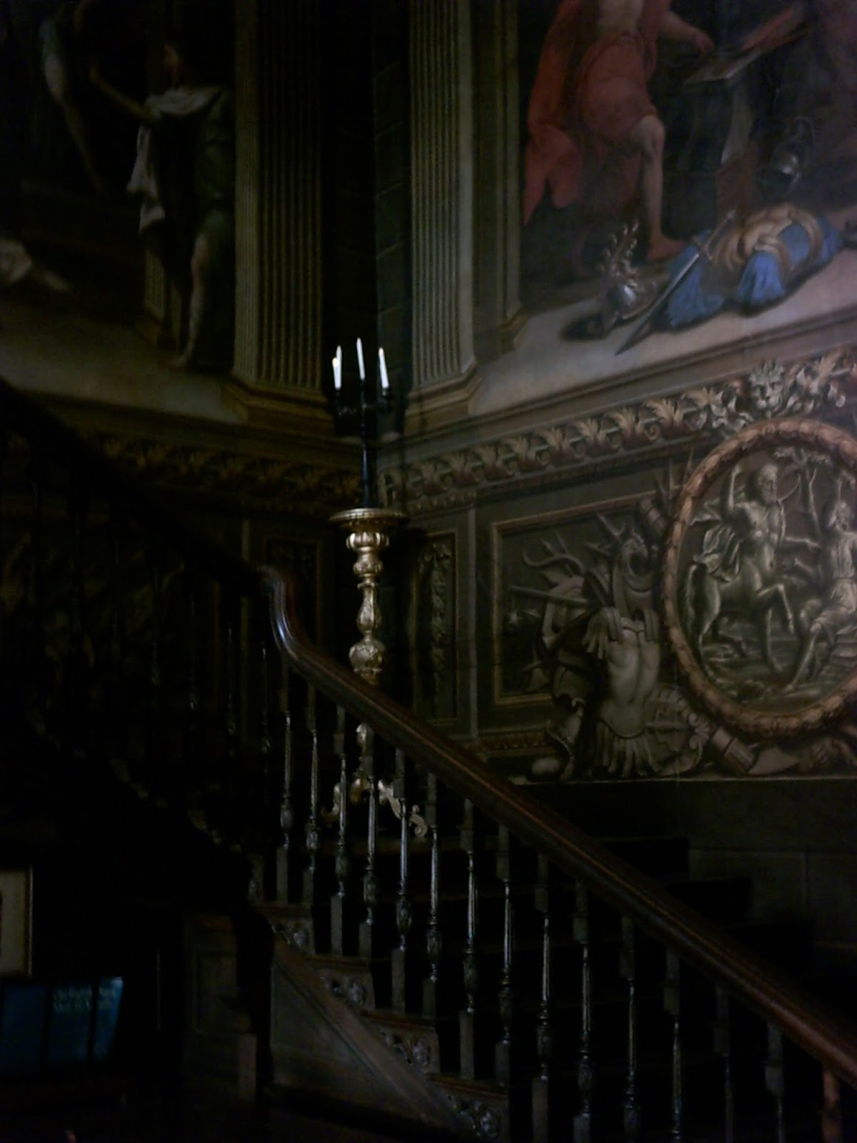 On a far smaller scale, built in 1709, the Entrance Hall of Hanbury Hall shows a similar style to Hardwick, with the awe-inspiring addition of James Thornhill paintings on the staircase.