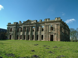 By contrast, this is the entrance hall of Sutton Scarsdale Hall in Derbyshire.