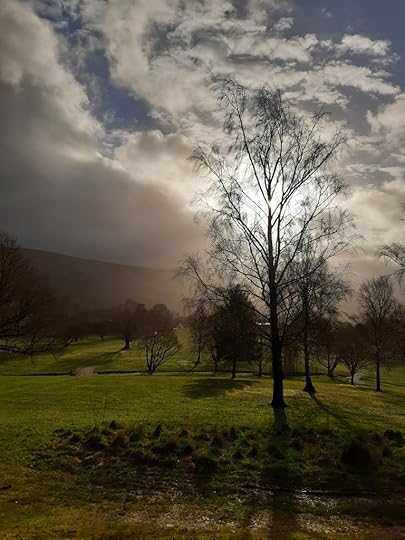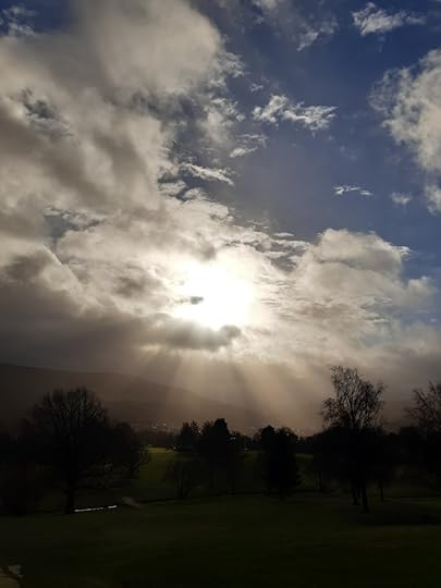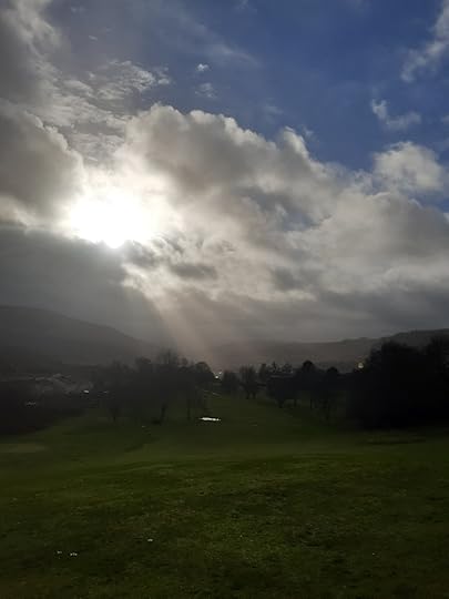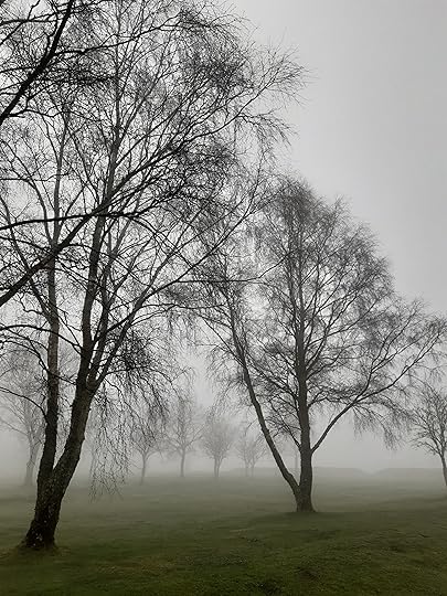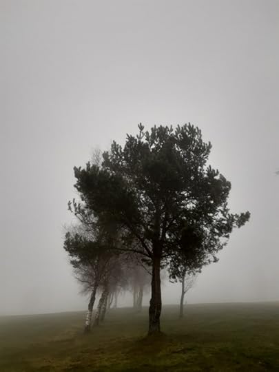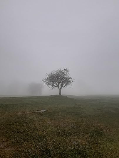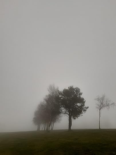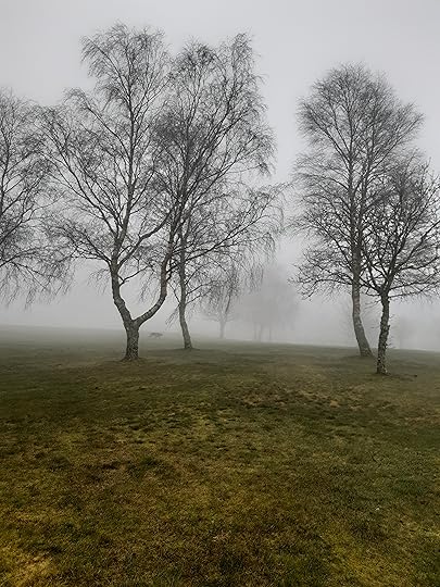 A few days ago we had heavy, misty cloud, and as I took Swingle for her afternoon stroll, it was quite eerie. We had the whole course to ourselves, apart from a couple of crows.