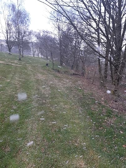 After about ten days of almost summery weather, the cold came to Cfenpennar. Showers of snow and those tiny little pellets.