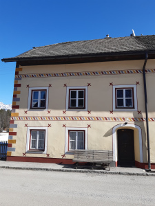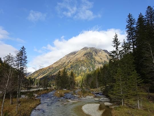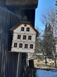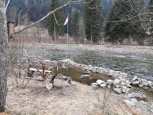 This is on one of our afternoon walks in Tamsweg by the Mur. Two guys have been beavering away for ages, making this little pond off the river. Not sure why. Maybe they just had time on their hands. It’s grown since these pictures with flowers and sculptures from things found in the river. Note the Salzburg land flag, and bird box. Wonder if kids will paddle in it in the summer?