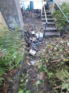 Dave and I have been doing some work in the garden which involved some digging around the footings below the house. He had wondered for a while, as the house is on a slope whether there had been a cellar under it, like there is next door.
