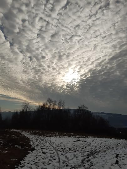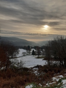 I’ve been sort of enjoying the walks in the pouring rain now that I have a new coat and waterproof trousers, and now that the golf course across from our house is shut in the bad weather, but the going is so heavy with the waterlogged ground it’s hard work. This was written before the snow!