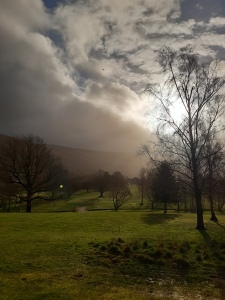 Then when I pondered, of course! In our little flat, we had the wood kitchen oven which we heated all day and then lit the sitting room one in the evening. We were always snug. This house quickly gets cold when it goes off, particularly with with conservatory roof in the kitchen, and we don’t realise we’ve got cold too, so it feels worse when we go out. So now we have put the heating on during the day, maybe it might cost less if it keeps a steady heat all the time rather than having to heat from scratch. Hopefully Wales will return to being mild and wet before long!