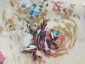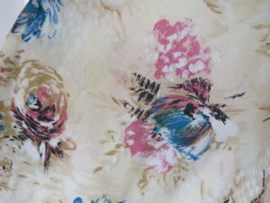 One of the items was a dress I loved to wear. It was far too big, dragged on the ground and I used a scarf around the waist to make it look less like a decorative sack draped over me. The stories about it fascinated me. They involved World War II, rations, a lack of material and things remaining scarce even when the war had ended. Nana told me how there was an excess of parachute silk, left over from the war, and some of it had patterns printed onto it so it could be used for dress fabric. She was able to get hold of a piece of the material and make herself a dress. After years of rations and being unable to get much more than the basics, she had something completely frivolous and unnecessary. The war had ended and people were trying to reclaim their previous lives.