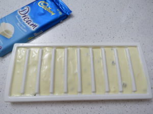 Melt the chocolate either over low heat or put boiling water in a large bowl and place chocolate in a smaller bowl that you sit in the large bowl.