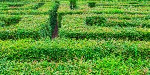 I’ve been fascinated by mazes since a child. The first time I discovered what they were was at a botanical garden and I wandered through the maze, unable to see over the hedges as I found my way through it, discovering hidden areas along the way. A section with interesting paving and another with a seat at a dead end. I spent hours exploring it and would have spent hours more if I’d been allowed to. I was able to revisit that particular maze as an adult and was extremely sad to find that the hedges were only tall enough for a child. Luckily, over the years I found other mazes, ones with hedges that were tall enough I could wander through them without seeing over the top.