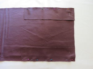 Pin the satchel sides to the body of the satchel, making sure the outside of the material pieces are facing each other.