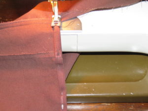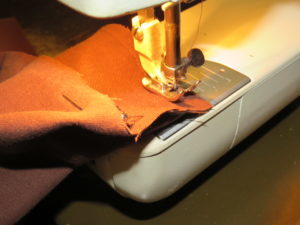 Zigzag along the edges of the sides to prevent fraying. Don’t go past the 1cm point marked on the back of the satchel sides.