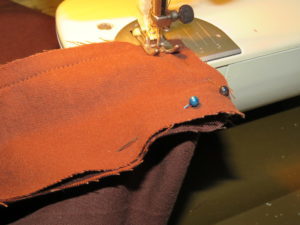 Sew the sides to the body of the satchel, stopping 1cm from the top at the back of the satchel. Mark the location with a pin so you know how far to sew.