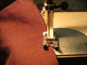 Hem the flap of the satchel, doing the sides first and the front edge last.
