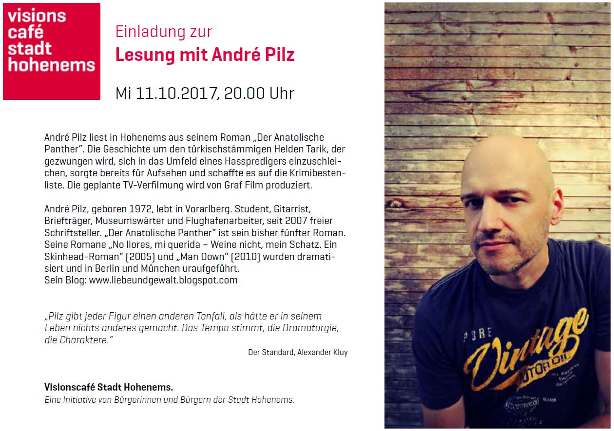 Lesung im Visionscafé in Hohenems: 12. Oktober um 20:00 Uhr