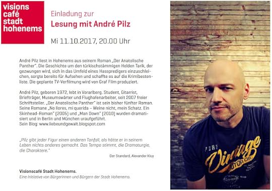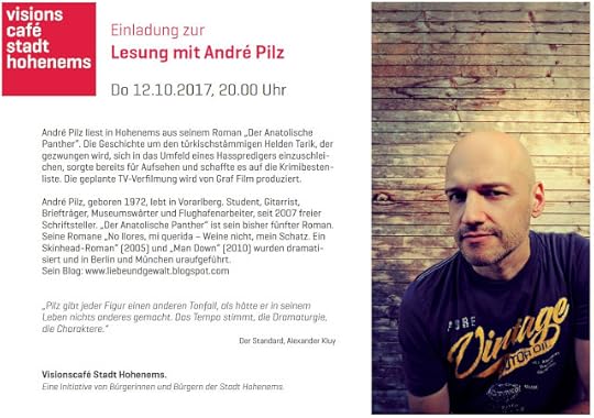 Am 21. September lese ich in Hall in Tirol, am 31. in Krems/NÖ und im Oktober in Hohenems aus meinem aktuellen Roman "Der Anatolische Panther".