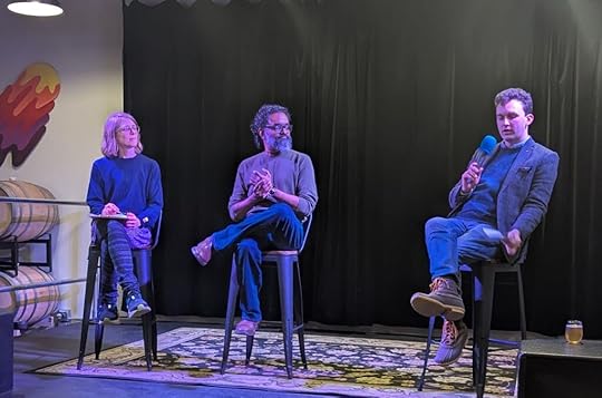 Debbie Urbanski, me, and Will McMahon at the Ithaca Irrealist Reading at Liquid State Brewing, Ithaca on the 20th. My beard always looks bigger in pictures than it does in the mirror. Picture courtesy of
