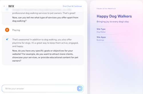You answer some questions about your business, and the ADI generates suitable designs, helping you choose colors, fonts, and images. Wix then provides apps and other add-ons to integrate, pairing a list of choices with your goals and services.
