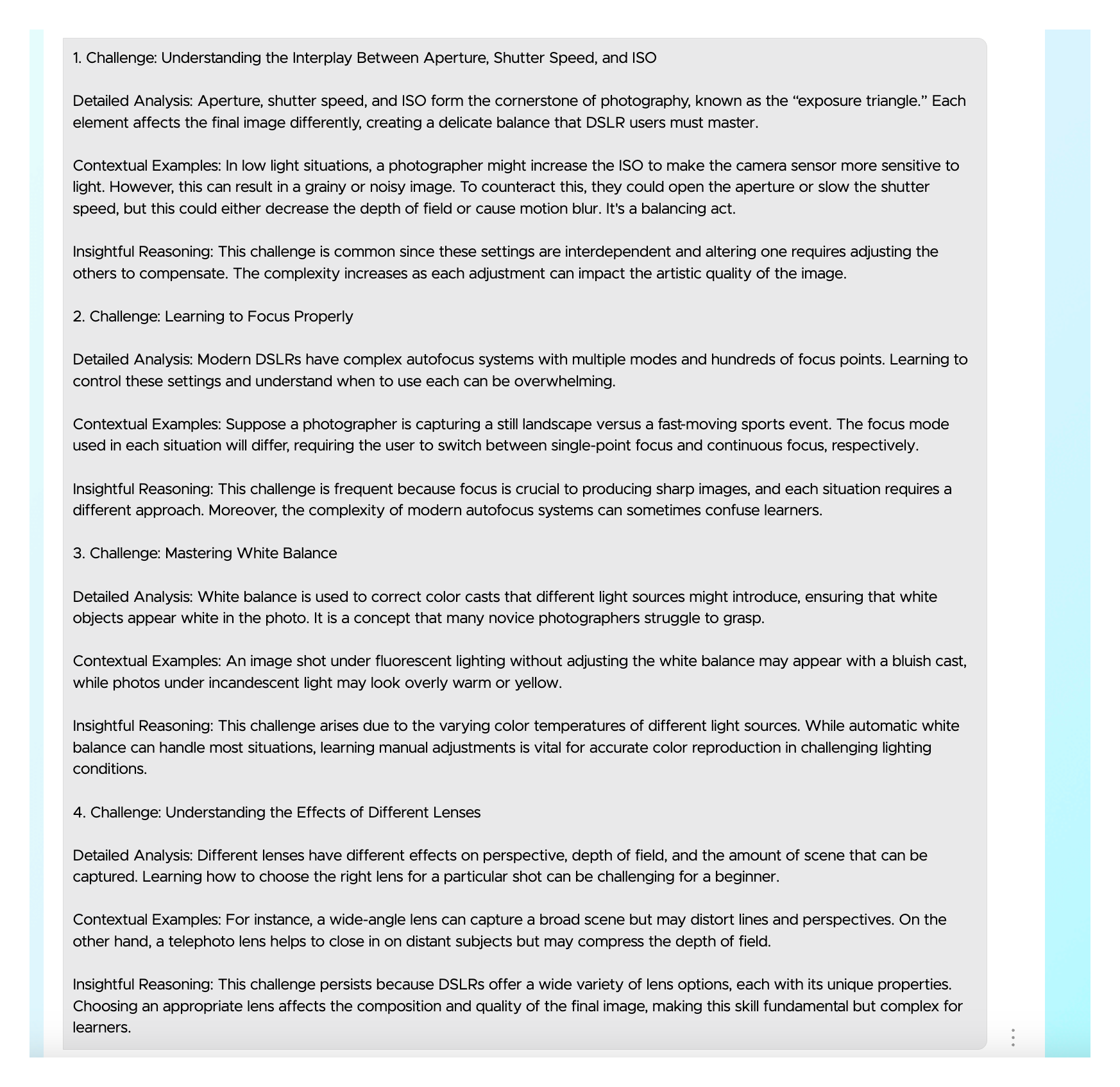 The insights from this prompt reveal exactly what visitors are searching for on Google. Remember, the secret to a successful web page is delivering what people want. Following the prompt, Tai provides valuable information about user interests. Add these valuable tips for improvement into your spreadsheet, then incorporate them later into your web or blog page.
