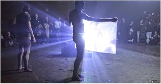 The same dancers as ‘Troupe Mabuse’, named after the film of Dr Mabuse, the criminal and hypnotist, the piece uses modern day reference points as its testings: dirty money from Las Vegas, black target images from war operations whether they be terrorism or other, and various methods of social mind control and manipulations that disrupt the soul from its true heroic calling.