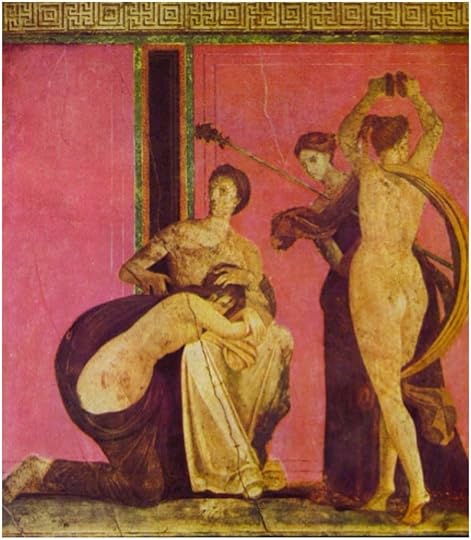 image from the Villa of Mistiri in PompeiiThe exhibition, currently on show at the Petit Palais in Paris is ‘'Les Bas-Fonds du Baroque’ and is showing 70 paintings of artists living in Rome during the 17th century baroque, interested in the Bacchian orgiastic life of their Roman forefathers.The artists of the time were living in the area around the Villa de Medici and had travelled down from France and Northern Europe.