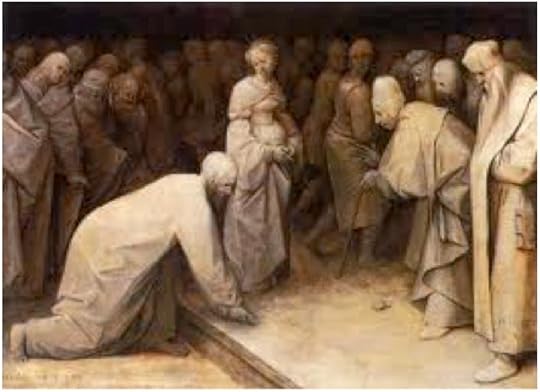 The Adulterous WomanThe Breughel dynasty was a big enterprise, consisting of Breugel the elder and his two sons, Jan and Pieter, plus other artists who joined. Their spreading of the word of God is not attained by criticism and judgement, but rather understanding and love, striving to understand the current trends of thinking and behaviour, rather than condemn human beings for their failures.