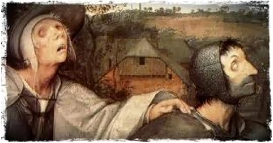 Booze, excess, lust, anger… are lessons for us and we can learn from misfortune and grown. If we do not learn from our mistakes and reflect on the old morals left to us by the dead wise, Brueghel warns us that peril and destruction await. We must also take care with whom we invest our trust. The blind leading the blind, shows a line of blind men falling into a hole.