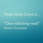 Take a photo of yourself reading Three Gold Coins (a ‘selfie’) or a photo of the book out and about in the world on the shelves (“shelfies”), or in an artfully placed arrangement (bookstagram).