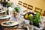 Try to set up your long table outdoors and under trees, if you have great weather. Otherwise, you could do was we did and bring the outdoors in with potted citrus and olive trees and plenty of terracotta pots filled with herbs.