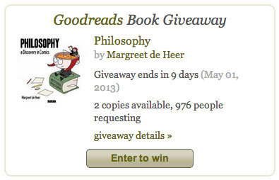To celebrate the second printing of Philosophy: a Discovery in Comics, I made another GiveAway on GoodReads.com. Now’s your chance to win a free, autographed copy of the first print! Click here to sign into GoodReads and enter the giveaway.