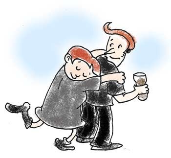 Is there anything better than doodling? Yes: doodling for two! This is a fun drawing “game” I love doing with other artists – each one draws a first panel in a six-panel grid, then passes the paper to the next person, who continues the story in his/her own style. Usually, this results in fascinating wacky comics.