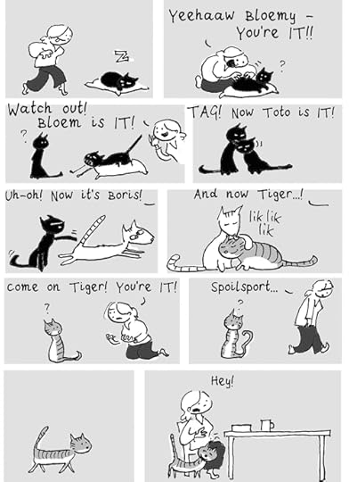 I’m going through my archives looking for comics I drew my cats in – and here’s one from 2003 featuring Tijger, a typical tabby: vibrant, affectionate, dominant and fierce.