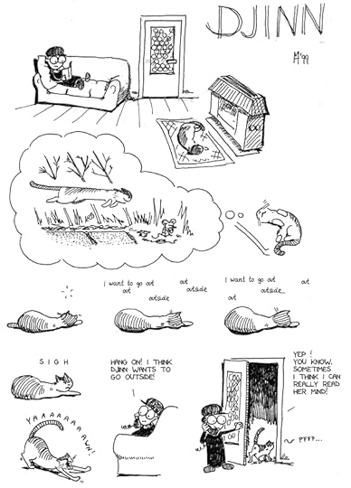 I looked through my archive to see when I drew my first cat-comic – and it’s this one, from 1999, about my sweet albeit a bit grumpy Scottish kitty Djinn: