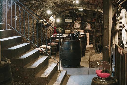Still, Franck and I noticed the beautiful stone vaulting of the ceiling and the stone pillars, all of which dated the cellar back to the middle ages, centuries before the building above had been constructed.