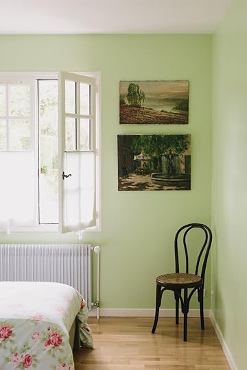 The two paintings above the bent-wood chair (I picked up the chair at a vide-grenier in Pernand-Vergelesses) in the girls' bedroom were bought last summer in Normandy, where we were staying for a week with a friend in their incredible family home. The brocante-ing in Normandy is almost too good to be imagined and I never seem to leave a brocante there with empty hands. I found these two old paintings and loved the serene note they would give to what is - when our family is at La Maison des Chaumes anyway - an extremely full and messy bedroom.