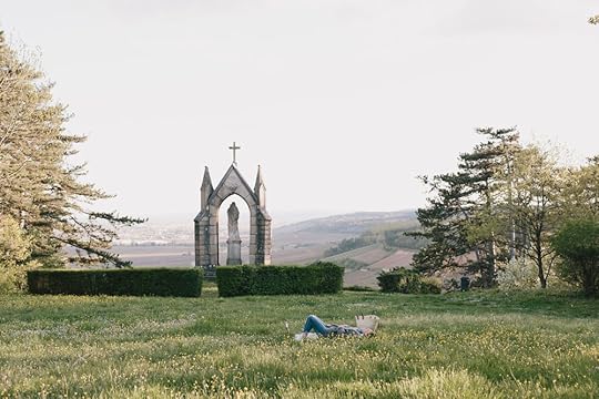 - On the field behind the Virgin Mary statue above the nearby village of Pernand-Vergelesses. This is where these photos were taken. If you have read my books, especially My Grape Year , you will know this statue holds such special significance for our family. The view down the valley towards Beaune of some of Burgundy's most valuable vineyards is not to be missed.