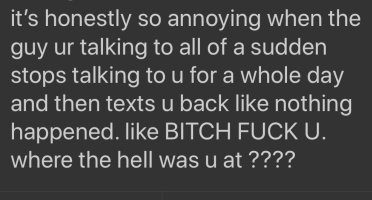 Ghosting: When a woman is too head strong, too independent, too hard to break, or suddenly tries to Spartan Up on a Dicktician there is one last Gaslighting tactic that works—The Fallback. What do women covet most of all? Transparency. The reason the average girl chases after guys that reject them more than guys that ride their clits is because of a need to know, “Why don’t you want me like everyone else?” When a man doesn’t text back after a date—what went wrong what did I do? When a man doesn’t reach out after sex—what went wrong was I not good? When a man you’re dating becomes distant and doesn’t communicate as frequently—what is going on, did I do something? It’s always YOU YOU YOU. Women race to take accountability for turning a man off, never realizing that it’s not them, some guys are just assholes that never wanted them from the jump. In a relationship where a man has built up equity, Ghosting is a great way to tighten his grip on your mind. Falling back could be the result of an argument or I could be the culmination of you stepping out of the weak role he’s trap you in, regardless of the reason, it goes a little something like this…