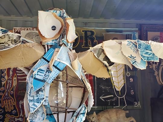 It’s a small drive-thru museum/art exhibit made mostly of shipping containers with glass walls so that you can see inside them when you drive slowly past. The containers are full of old bones, sculptures, paintings, artifacts, and taxidermy. The outside of the shipping containers are covered in murals.