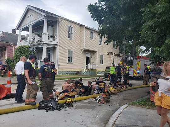 One month ago today our apartment building was hit by lightning and caught fire during an afternoon rainstorm. We got ourselves and our animals out, watching for 3 hours as exactly 10 firetrucks showed up, squads of Firemen taking turns going into the 4 apartments to put the fire out.