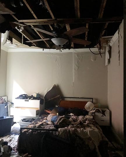 We lived in a 4-plex house, with two apartments on the first floor and two above on the second. The theory is that lightning hit a metal pipe near the roof and traveled into the house, starting a fire in the crawlspace between the top apartments and the bottom apartments, and then spread into the walls of the upper apartments. We were on the first floor, and none of our stuff actually burned. The firemen going into our apartment tore down the ceiling in our bedroom and kitchen so they could spray the fire from below as other firemen were spraying the floor from the upstairs apartments. So a lot of our stuff was destroyed by tons of water, pieces of the ceiling falling onto everything, and ash from the burned wood.